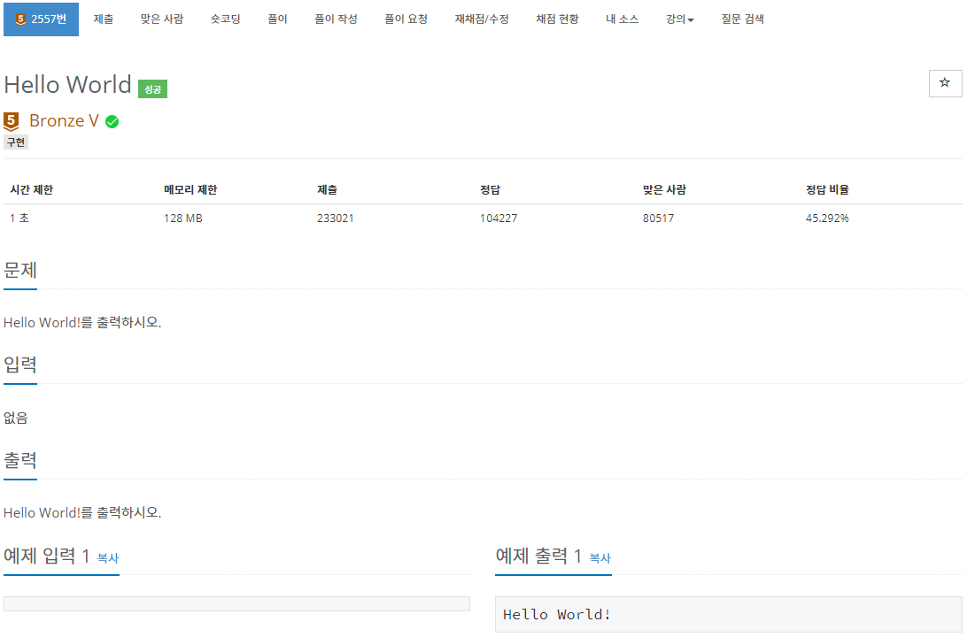 이번 문제는 Hello World! 를 출력하면 되는 문제입니다.