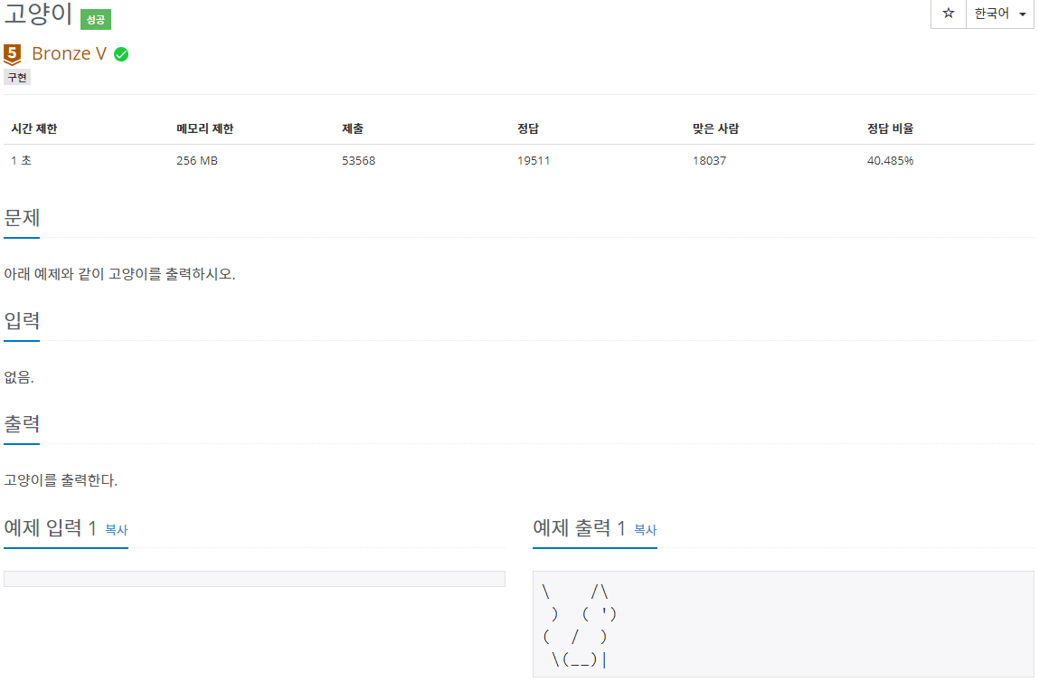 이번 문제는 예제 출력칸에 있는 고양이를 그대로 출력하면 되는 문제입니다.