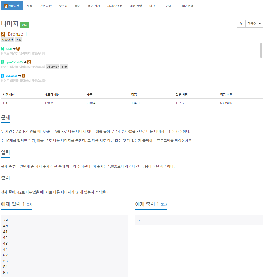이 포스팅에서는 백준 알고리즘 사이트 3052번을 파이썬으로 코딩해보도록 하겠습니다.