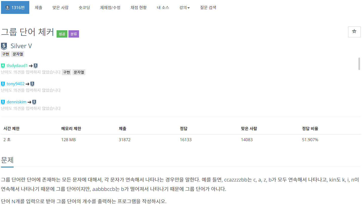이 포스팅에서는 백준 알고리즘 사이트 1316번을 파이썬으로 코딩해보도록 하겠습니다.